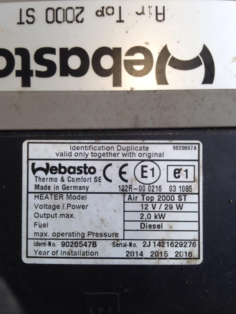 VOLVO BUNK HEATER WEBASTO 122R-00 0216 03 1085